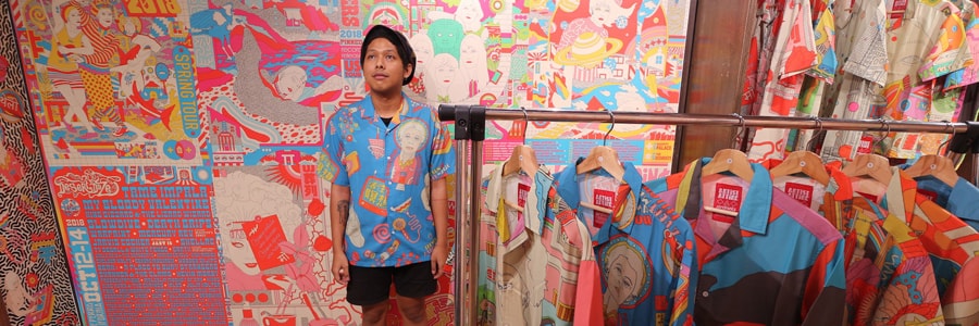 ①「イコールフェスティバル 2019」のメインビジュアルを手がけたインドネシアのアーティスト Ardneks(アルドネックス)のアート満載のアパレルブランド「ARtIST AtTIRE」の POP UP が早くも再上陸! 今年 7 月に THE STORIES で紹介され、大人気を集めたオリジナルアロハを再び手にとって買うことができる サイケなショップが期間限定オープン。世界発売もターゲットにしたサイケブランドをいち早く手に入れるチャンス!