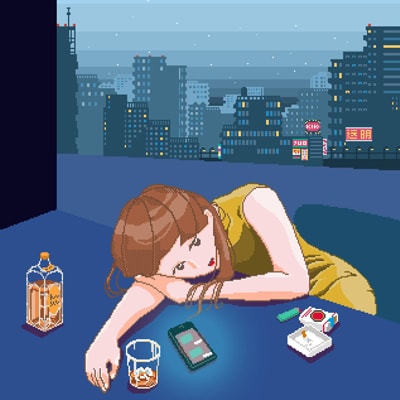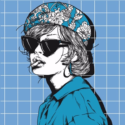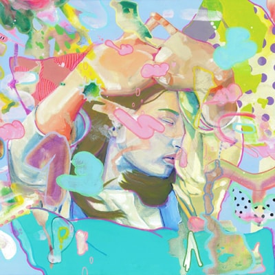 女性を主にモチーフとし、無作為に散りばめた色を日常の音に見立てたカラフルポップな作品を描く。